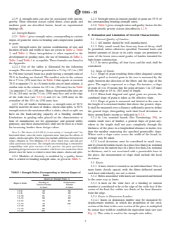 3.2 How Visual Grading is Accomplished—Visual grading is accomplished from an examination of all four faces and the ends of the piece, in which the location as well as the size and nature of the knots and other features appearing on the surfaces are evaluated over the entire length. Basic principles of structural grading have been established that permit the evaluation of any piece of stress-graded lumber in terms of a strength ratio for each property being evaluated. The strength ratio of stress-graded lumber is the hypothet...