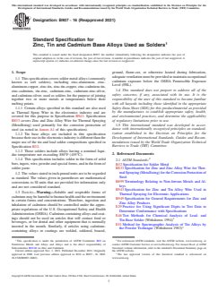 ASTM B907-16(2021) - Standard Specification for Zinc, Tin and Cadmium Base Alloys Used as Solders