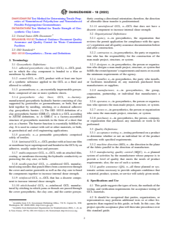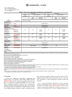 ABSTRACT This guide covers guidelines for the acceptance testing requirements for geosynthetic clay liner (GCL) materials, describing types of tests, test methods, and recommended verifications and is intended to aid purchasers, installers, contractors, owners, operators, designers and agencies in establishing a minimum level of effort for product acceptance testing and verification. This guide suggests the types of tests, the methods of the testing, and verification requirements for acceptance testing of GCL materials. It should be recognized that parties, organizations or representatives may perform additional tests and/or at other frequencies than required in this standard guide. In this case, the project-specific acceptance plan will then take precedence over this standard guide. Different properties such as clay mass per unit area, swell index, fluid loss, grab tensile strength, tensile strength, density and thickness of geomembrane support, and bonding peel strength shall be determined by subjecting the material to different test methods. SCOPE 1.1 This guide covers guidelines for the acceptance testing requirements for geosynthetic clay liner (GCL) materials, describing types of tests, test methods, and recommended verifications. 1.2 This guide is intended to aid purchasers, installers, contractors, owners, operators, designers, and agencies in establishing a minimum level of effort for product acceptance testing and verification. This is intended to ensure that the supplied GCL rolls meet accepted material specifications. 1.3 The values stated in either SI units or inch-pound units are to be regarded separately as standard. The values stated in each system are not necessarily exact equivalents; therefore, to ensure conformance with the standard, each system shall be used independently of the other, and values from the two systems shall not be combined. 1.4 This guide offers an organized collection of information or a series of options and does not recommend a specific course of action. This guide cannot replace education or experience and should be used in conjunction with professional judgment. Not all aspects of this guide may be applicable in all circumstances. This guide is not intended to represent or replace the standard of care by which the adequacy of a given professional service must be judged, nor should this guide be applied without consideration of a project's many unique aspects. The word “Standard” in the title of this guide means only that the guide has been approved through the ASTM consensus process. 1.5 This standard does not purport to address all of the safety concerns, if any, associated with its use. It is the responsibility of the user of this standard to establish appropriate safety, health, and environmental practices and determine the applicability of regulatory limitations prior to use. 1.6 This international standard was developed in accordance with internationally recognized principles on standardization established in the Decision on Principles for the Development of International Standards, Guides and Recommendations issued by the World Trade Organization Technical Barriers to Trade (TBT) Committee.