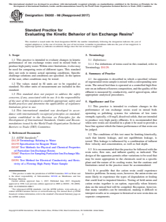ASTM D6302-98(2017) - Standard Practice for Evaluating the Kinetic Behavior of Ion Exchange Resins