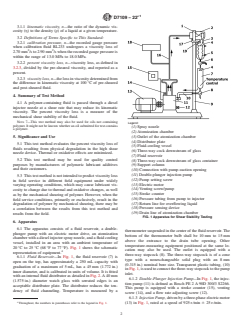 SIGNIFICANCE AND USE 5.1 This test method evaluates the percent viscosity loss of fluids resulting from physical degradation in the high shear nozzle device. Thermal or oxidative effects are minimized. 5.2 This test method may be used for quality control purposes by manufacturers of polymeric lubricant additives and their customers. 5.3 This test method is not intended to predict viscosity loss in field service in different field equipment under widely varying operating conditions, which may cause lubricant viscosity to change due to thermal and oxidative changes, as well as by the mechanical shearing of polymer. However, when the field service conditions, primarily or exclusively, result in the degradation of polymer by mechanical shearing, there may be a correlation between the results from this test method and results from the field. SCOPE 1.1 This test method covers the evaluation of the shear stability of polymer-containing fluids. The test method measures the viscosity loss, in mm2/s and percent, at 100 °C of polymer-containing fluids when evaluated by a diesel injector apparatus procedure that uses European diesel injector test equipment. The viscosity loss reflects polymer degradation due to shear at the nozzle. Viscosity loss is evaluated after both 30 cycles and 90 cycles of shearing. Note 1: This test method evaluates the shear stability of oils after both 30 cycles and 90 cycles of shearing. For most oils, there is a correlation between results after 30 cycles and results after 90 cycles of shearing, but this is not universal. Note 2: Test Method D6278 uses essentially the same procedure with 30 cycles but without the 90 cycles portion of the test. The correlation between results from this test method at 30 cycles and results from Test Method D6278 has been established and shown in Research Report RR:D02-1629 to be equivalent. Note 3: Test Method D2603 has been used for similar evaluation of shear stability; limitations are as indicated in the significance statement. No detailed attempt has been undertaken to correlate the results of this test method with those of the sonic shear test method. Note 4: This test method uses test apparatus as defined in CEC L-14-A-93. This test method differs from CEC-L-14-A-93 in the period of time required for calibration. Note 5: Test Method D5275 also shears oils in a diesel injector apparatus but may give different results. Note 6: This test method has different calibration and operational requirements than withdrawn Test Method D3945. 1.2 The values stated in SI units are to be regarded as standard. The values given in parentheses after SI units are provided for information only and are not considered standard. 1.3 This standard does not purport to address all of the safety concerns, if any, associated with its use. It is the responsibility of the user of this standard to establish appropriate safety, health, and environmental practices and determine the applicability of regulatory limitations prior to use. Specific warning statements are given in Section 8. 1.4 This international standard was developed in accordance with internationally recognized principles on standardization established in the Decision on Principles for the Development of International Standards, Guides and Recommendations issued by the World Trade Organization Technical Barriers to Trade (TBT) Committee.
