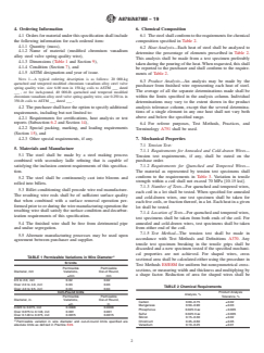ASTM A878/A878M-19 is a technical specification published by ASTM International. Its full title is "Standard Specification for Steel Wire, Modified Chromium Vanadium Valve Spring Quality". This standard covers: ABSTRACT This specification covers the highest quality of round modified chromium vanadium alloy steel valve spring wires, uniform in quality and temper, intended for the manufacture of valve springs and other springs requiring high-fatigue properties when used at moderately elevated temperatures. This wire shall either be in the annealed and cold-drawn or oil-tempered condition. The steel shall be subjected to continuous casting and be free from detrimental pipe and undue segregation. Heat and product analysis shall conform to the chemical requirements for carbon, manganese, phosphorus, sulfur, silicon, chromium, and vanadium. Mechanical properties shall be determined by the following: annealing and cold-drawing, oil tempering, wrap testing, and special surface inspection. In the oil-tempered condition, steel shall conform to the tensile requirements for different wire diameters. Metallurgical characterization shall include surface condition, decarburization, and inclusion content. The wire or wire rod shall conform to the maximum inclusion content requirements for the surface and core zones. SCOPE 1.1 This specification covers the highest quality of round and shaped modified chromium vanadium alloy steel valve spring wire, uniform in quality and temper, intended for the manufacture of valve springs and other springs requiring high-fatigue properties when used at moderately elevated temperatures. It is similar to the grade VD (referenced in EN 10270-2) intended for high fatigue levels. This wire shall be either in the annealed and cold-drawn or quenched and tempered condition as specified by purchaser. 1.2 The values stated in either SI units or inch-pound units are to be regarded separately as standard. Within the text, the inch-pound units are shown in brackets. The values stated in each system are not exact equivalents; therefore, each system shall be used independent of the other. Combining values from the two systems may result in non-conformance with the standard. 1.3 This international standard was developed in accordance with internationally recognized principles on standardization established in the Decision on Principles for the Development of International Standards, Guides and Recommendations issued by the World Trade Organization Technical Barriers to Trade (TBT) Committee.