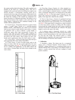 SIGNIFICANCE AND USE 4.1 These test methods are used to determine the gauge height or elevation of a river or other body of water above a given datum. 4.2 Water level data can serve as an easily recorded parameter, and through use of a stage-discharge relation provide an indirect value of stream discharge, often at a gauging station. 4.3 These test methods can be used in conjunction with other determinations of biological, physical, or chemical properties of waters. SCOPE 1.1 These test methods cover equipment and procedures used in obtaining water levels of rivers, lakes, and reservoirs or other water bodies. Three types of equipment are available as follows: Test Method A—Nonrecording water-level measurement devices Test Method B—Recording water-level measurement devices Test Method C—Remote-interrogation water-level measurement devices 1.2 The procedures detailed in these test methods are widely used by those responsible for investigations of streams, lakes, reservoirs, and estuaries, for example, the U.S. Agricultural Research Service, the U.S. Army Corp of Engineers, and the U.S. Geological Survey.2 The referenced ISO standard also furnishes useful information. 1.3 It is the responsibility of the user of these test methods to determine the acceptability of a specific device or procedure to meet operational requirements. Compatibility between sensors, recorders, retrieval equipment, and operational systems is necessary, and data requirements and environmental operating conditions must be considered in equipment selection. 1.4 The values stated in inch-pound units are to be regarded as standard. The values given in parentheses are mathematical conversions to SI units that are provided for information only and are not considered standard. 1.5 This standard does not purport to address all of the safety concerns, if any, associated with its use. It is the responsibility of the user of this standard to establish appropriate safety, health, and environmental practices and determine the applicability of regulatory limitations prior to use. 1.6 This international standard was developed in accordance with internationally recognized principles on standardization established in the Decision on Principles for the Development of International Standards, Guides and Recommendations issued by the World Trade Organization Technical Barriers to Trade (TBT) Committee.