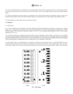 6.1.2 Inclined Staff Gauges—Inclined staff gauges usually consist of markings on heavy timbers, steel beams, or occasionally