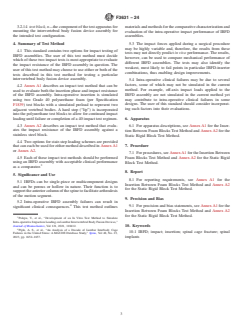 1.2 This test method is intended to provide a basis for the mechanical comparison among nonbiologic IBFD assemblies (the IBFD and associated inserter tool). This test method is intended to enable the user to compare these IBFD assemblies under impact loads to simulate the intra-operative surgical technique used to insert the IBFD.