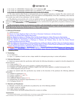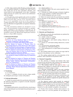 - Prescribes chemical requirements and permissible variations for each allowed element, using referenced ASTM test methods.