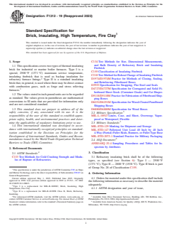 ASTM F1312-19(2023) - Standard Specification for Brick, Insulating, High Temperature, Fire Clay