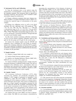 1.2 This test method covers a procedure for quantitative determination of the concentrations of magnesium (Mg), aluminum (Al), iron (Fe), titanium (Ti), manganese (Mn), rubidium (Rb), strontium (Sr), zirconium (Zr), barium (Ba), lanthanum (La), cerium (Ce), neodymium (Nd), samarium (Sm), and lead (Pb) in glass samples.