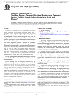 ASTM C831-18(2023) - Standard Test Methods for Residual Carbon, Apparent Residual Carbon, and Apparent Carbon Yield in Coked Carbon-Containing Brick and Shapes