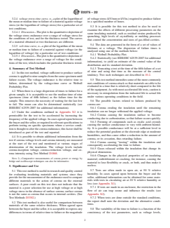 - Voltage Endurance Testing: The standard outlines procedures to determine how long insulating materials can withstand high-voltage stress accompanied by corona discharges on their surface, using nine test specimens at voltages above inception but below those causing rapid failure.
