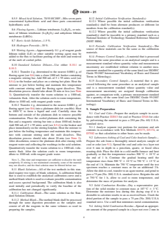 SIGNIFICANCE AND USE 5.1 A compositional analysis of coal and coke and their associated combustion residues are often useful in assessing their quality. Knowledge of the elemental composition of the associated residues is also useful in predicting the elemental enrichment/depletion compositional behavior of ashes and slags in comparison to the mass fraction in the parent coal. Utilization of the ash by-products and hazardous potential may also depend on the chemical composition and leachability of the inorganic constituents of the coal ash. 5.2 The chemical composition of laboratory-prepared ash may not exactly represent the composition of mineral matter in coal or the composition of fly ash and slag resulting from commerical-scale burning of the coal. SCOPE 1.1 This test method covers a procedure for the analysis of the commonly determined major and minor elements in coal, coke, and solid residues from combustion of coal and coke. These residues may be laboratory ash, bottom ash, fly ash, flue gas desulfurization sludge, and other combustion process residues. Note 1: There are two interlaboratory studies associated with this test method. The first was conducted in 1997 ( RR:D05-1035)2 and the second was conducted in 2007 ( RR:D05-1032).3 Sulfur trioxide was only included in the 2007 study, and that study only included combustion residues derived from ash and no combustion residues derived from coke. 1.2 Units-The values stated in SI units are to be regarded as standard. The values given in parentheses after SI units are provided for information only and are not considered standard. 1.3 This standard does not purport to address all of the safety concerns, if any, associated with its use. It is the responsibility of the user of this standard to establish appropriate safety, health, and environmental practices and determine the applicability of regulatory limitations prior to use. 1.4 This international standard was developed in accordance with internationally recognized principles on standardization established in the Decision on Principles for the Development of International Standards, Guides and Recommendations issued by the World Trade Organization Technical Barriers to Trade (TBT) Committee.