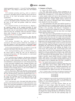 ASTM D5741-96(2023) is a standard published by ASTM International. Its full title is "Standard Practice for Characterizing Surface Wind Using a Wind Vane and Rotating Anemometer". This standard covers: SIGNIFICANCE AND USE 5.1 This practice will characterize the distribution of wind with a maximum of utility and a minimum of archive space. Applications of wind data to the fields of air quality, wind engineering, wind energy, agriculture, oceanography, forecasting, aviation, climatology, severe storms, turbulence and diffusion, military, and electrical utilities are satisfied with this practice. When this practice is employed, archive data will be of value to any of these fields of application. The consensus reached for this practice includes representatives of instrument manufacturers which provides a practical acceptance of these theoretical principles used to characterize the wind. SCOPE 1.1 This practice covers a method for characterizing surface wind speed, wind direction, peak one-minute speeds, peak three-second and peak one-minute speeds, and standard deviations of fluctuation about the means of speed and direction. 1.2 This practice may be used with other kinds of sensors if the response characteristics of the sensors, including their signal conditioners, are equivalent or faster and the measurement uncertainty of the system is equivalent or better than those specified below. 1.3 The characterization prescribed in this practice will provide information on wind acceptable for a wide variety of applications. Note 1: This practice builds on a consensus reached by the attendees at a workshop sponsored by the Office of the Federal Coordinator for Meteorological Services and Supporting Research in Rockville, MD on Oct. 29–30, 1992. 1.4 The values stated in SI units are to be regarded as standard. No other units of measurement are included in this standard. 1.5 This standard does not purport to address all of the safety concerns, if any, associated with its use. It is the responsibility of the user of this standard to establish appropriate safety, health, and environmental practices and determine the applicability of regulatory limitations prior to use. 1.6 This international standard was developed in accordance with internationally recognized principles on standardization established in the Decision on Principles for the Development of International Standards, Guides and Recommendations issued by the World Trade Organization Technical Barriers to Trade (TBT) Committee.