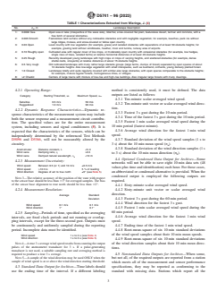 SIGNIFICANCE AND USE 5.1 This practice will characterize the distribution of wind with a maximum of utility and a minimum of archive space. Applications of wind data to the fields of air quality, wind engineering, wind energy, agriculture, oceanography, forecasting, aviation, climatology, severe storms, turbulence and diffusion, military, and electrical utilities are satisfied with this practice. When this practice is employed, archive data will be of value to any of these fields of application. The consensus reached for this practice includes representatives of instrument manufacturers which provides a practical acceptance of these theoretical principles used to characterize the wind. SCOPE 1.1 This practice covers a method for characterizing surface wind speed, wind direction, peak one-minute speeds, peak three-second and peak one-minute speeds, and standard deviations of fluctuation about the means of speed and direction. 1.2 This practice may be used with other kinds of sensors if the response characteristics of the sensors, including their signal conditioners, are equivalent or faster and the measurement uncertainty of the system is equivalent or better than those specified below. 1.3 The characterization prescribed in this practice will provide information on wind acceptable for a wide variety of applications. Note 1: This practice builds on a consensus reached by the attendees at a workshop sponsored by the Office of the Federal Coordinator for Meteorological Services and Supporting Research in Rockville, MD on Oct. 29–30, 1992. 1.4 The values stated in SI units are to be regarded as standard. No other units of measurement are included in this standard. 1.5 This standard does not purport to address all of the safety concerns, if any, associated with its use. It is the responsibility of the user of this standard to establish appropriate safety, health, and environmental practices and determine the applicability of regulatory limitations prior to use. 1.6 This international standard was developed in accordance with internationally recognized principles on standardization established in the Decision on Principles for the Development of International Standards, Guides and Recommendations issued by the World Trade Organization Technical Barriers to Trade (TBT) Committee.