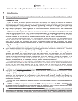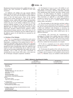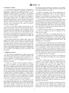 5.1 The number and distribution of viable and non-viable cells within, or on the surface of, a biomaterial scaffold is one of several important characteristics that may determine in vivo product performance of cell/biomaterial constructs (see 5.7); therefore, there is a need for standardized test methods to quantify cell viability.