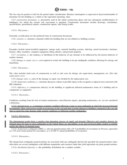 ASTM E2026-16a is a guide published by ASTM International. Its full title is "Standard Guide for Seismic Risk Assessment of Buildings". This standard covers: ABSTRACT This guide provides guidance on conducting seismic risk assessments for buildings. As such, this guide assists a User to assess a property’s potential for losses from earthquake occurrences. Hazards addressed in this guide include earthquake ground shaking, earthquake-caused site instability, including fault rupture, landslides and soil liquefaction, lateral spreading and settlement, and earthquake-caused off-site response impacting the property, including flooding from dam or dike failure, tsunamis and seiches. This guide is intended to reflect a commercially prudent and reasonable investigation for performance of seismic risk assessments. Seismic risk assessments may be performed for an individual building or a group of buildings. This guide provides suggested approaches for the performance of five different types of seismic risk assessments. Building stability, site stability, building damageability, contents damageability, business interruption, and application and temporal relevance of report. Each is intended to serve different financial and management needs of the User. An earthquake ground motion assessment should be conducted in conjuction with probable loss evaluations for building damageability and may have applications in some scenario loss studies, as well as building stability or site stability assessments. Seismic risk assessments may consider varying degrees of assessment of a building or buildings from Level 0 to Level 3. SIGNIFICANCE AND USE 4.1 Uses—This Guide is intended for use on a voluntary basis by parties such as lenders, loan servicers, insurers and equity investors in real estate (Users) who wish to estimate possible earthquake losses to buildings. This guide outlines procedures for conducting a seismic risk assessment for a specific User considering the User's requirements for due diligence. The specific purpose of this guide is to provide Users with seismic risk assessment during the anticipated term for holding either the mortgage or the deed. A seismic risk assessment prepared in accordance with this guide should reference or state that the guidance in this document was used as a basis for the report and should also identify any deviations from the guidelines. This guide is intended to reflect a commercially prudent and reasonable investigation for performance of seismic risk assessments. 4.1.1 Users—This Guide is designed to assist the User in developing information about the earthquake-related damage potential of a building, or groups of buildings. 4.1.1.1 Use of this guide may permit a User to satisfy, in part, their requirements for due diligence in assessing a building’s potential for losses associated with earthquakes for real estate transactions. 4.1.2 Types of Investigations—This guide provides suggested approaches for the performance of five different types of assessments. Each is intended to serve different financial and management needs of the User. Several of these types of assessment specifically depend on characterization of the earthquake ground motion as given in Section 7. 4.1.2.1 Building Stability (BS)—Assessment of whether the building will maintain vertical load-carrying capacity in whole or in part during considered earthquake ground motions (see Section 8). 4.1.2.2 Site Stability (SS)—Assessment of the likelihood that the site will remain stable in earthquakes and is not subject to failure through faulting, soil liquefaction, landslide, or other site respo... SCOPE 1.1 This guide provides guidance on conducting seismic risk assessments for buildings. As such, this guide assists a User to assess a property's potential for losses from earthquake occurrences. 1.1.1 Hazards addressed in this guide include: 1.1.1.1 Earthquake ground shaking, 1.1.1.2 Earthquake-caused site instability, including fault rupture, landslides, soil liquefaction, lateral spreading and settlement, and 1.1.1.3 Earthquake-caused off-site response impacting ...