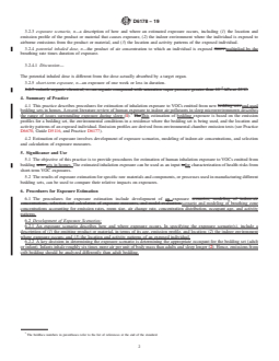 SIGNIFICANCE AND USE 5.1 The objective of this practice is to provide procedures for estimation of human inhalation exposure to VOCs emitted from bedding sets in homes. The estimated inhalation exposure can be used as an input for characterization of health risks from short-term VOC exposures. 5.2 The results of exposure estimation for specific raw materials and components, or processes used in manufacturing different bedding sets, can be used to compare their relative impacts on exposures. SCOPE 1.1 This practice describes the procedures for estimation of short-term human inhalation exposure to volatile organic compounds (VOCs) emitted from bedding sets when a new bedding set is first brought into a bedroom. 1.2 The estimated exposure is based on an estimated emission profile of VOCs from bedding sets. 1.3 The VOC emission from bedding sets, as in the case of other household furnishings, usually are highest when the products are new. Procedures described in this practice are applicable to both new and used bedding sets. 1.4 Exposure to airborne VOC emissions in a residence is estimated for a household member, based on location and activity patterns. 1.5 The estimated exposure may be used for characterization of health risks that could result from short-term exposures to VOC emissions. 1.6 The values stated in SI units are to be regarded as standard. No other units of measurement are included in this standard. 1.7 This standard does not purport to address all of the safety concerns, if any, associated with its use. It is the responsibility of the user of this standard to establish appropriate safety, health, and environmental practices and determine the applicability of regulatory limitations prior to use. 1.8 This international standard was developed in accordance with internationally recognized principles on standardization established in the Decision on Principles for the Development of International Standards, Guides and Recommendations issued by the World Trade Organization Technical Barriers to Trade (TBT) Committee.