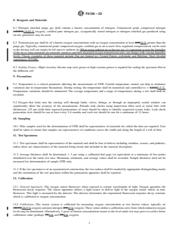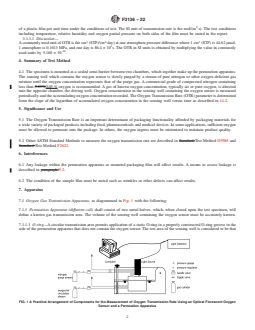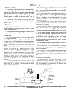 SIGNIFICANCE AND USE 5.1 The Oxygen Transmission Rate is an important determinant of packaging functionality afforded by packaging materials for a wide variety of packaged products including food, pharmaceuticals and medical devices. In some applications, sufficient oxygen must be allowed to permeate into the package. In others, the oxygen ingress must be minimized to maintain product quality. 5.2 Other ASTM Standard Methods to measure the oxygen transmission rate are described in Test Method D3985 and Test Method F2622. SCOPE 1.1 This test method covers a procedure for determination of the transmission rate of oxygen gas through plastics in the form of film, sheeting, laminates, coextrusions, coated or uncoated papers or fabrics. 1.2 This test method is not the only method for measurement of the oxygen transmission rate (OTR). There are other methods of OTR determination that use other oxygen sensors and procedures. 1.3 The values stated in SI units are to be regarded as standard. Commonly used metric units used to report Oxygen Transmission Rate are included in Terminology, Procedure, Precision and Bias sections and in the Calculation section of the Appendix. 1.4 This standard does not purport to address all of the safety concerns, if any, associated with its use. It is the responsibility of the user of this standard to establish appropriate safety, health, and environmental practices and determine the applicability of regulatory limitations prior to use. 1.5 This international standard was developed in accordance with internationally recognized principles on standardization established in the Decision on Principles for the Development of International Standards, Guides and Recommendations issued by the World Trade Organization Technical Barriers to Trade (TBT) Committee.