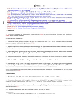- Defines requirements for solvent cements used for joining PVC piping systems.