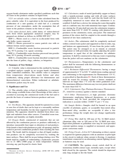 - Equipment Requirements: Specifies the use of a bomb calorimeter, suitable crucibles, thermometers, and ignition circuits, as well as stringent requirements for calibration and performance to ensure consistent results.