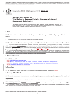 REDLINE ASTM D4468-23 - Standard Test Method for Total Sulfur in Gaseous Fuels by Hydrogenolysis and<brk/> Rateometric Colorimetry