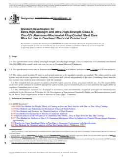 REDLINE ASTM B958/B958M-23 - Standard Specification for Extra-High-Strength and Ultra-High-Strength Class A Zinc–5% Aluminum-Mischmetal Alloy-Coated Steel Core Wire for Use in Overhead Electrical Conductors