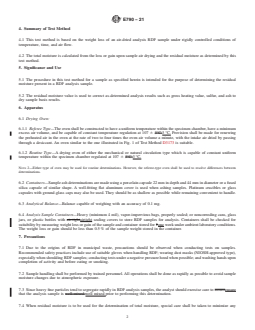 4.1 This test method is based on the weight loss of an air-dried analysis RDF sample under rigidly controlled conditions of