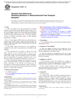 ASTM E790-21 - Standard Test Method for Residual Moisture in Refuse-Derived Fuel Analysis Samples