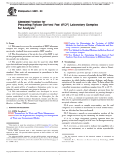 ASTM E829-23 - Standard Practice for Preparing Refuse-Derived Fuel (RDF) Laboratory Samples for Analysis