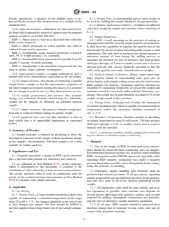 The standard outlines procedures for converting RDF laboratory samples, previously obtained from representative RDF lots, into an analysis-ready state. This process includes steps such as air-drying, particle size reduction, and division to ensure the sample analyzed truly reflects the larger RDF batch.Moisture Determination