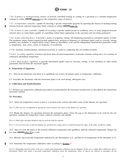 - Apparatus Requirements: Specifies the use of electronic thermometers, dummy test specimens, and rheometers with specific performance capabilities in temperature control and measurement.
