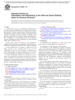 ASTM D4582-23 - Standard Practice for Calculation and Adjustment of the Stiff and Davis Stability Index for Reverse Osmosis