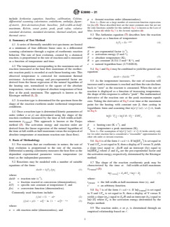1.1 This test method describes the determination of the kinetic parameters of Arrhenius activation energy and pre-exponential factor using the Kissinger variable heating rate iso-conversion method (1, 2)2 and activation energy and reaction order by the Farjas method (3) for thermally unstable materials. The test method is applicable to the temperature range from 300 K to 900 K (27 °C to 627 °C).