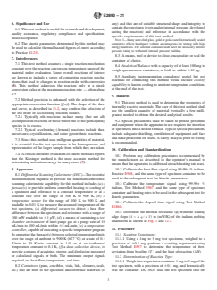 ASTM E2890-21 is a standard published by ASTM International. Its full title is "Standard Test Method for Determination of Kinetic Parameters and Reaction Order for Thermally Unstable Materials by Differential Scanning Calorimetry Using the Kissinger and Farjas Methods". This standard covers: SIGNIFICANCE AND USE 6.1 This test method is useful for research and development, quality assurance, regulatory compliance and specification-based acceptance. 6.2 The kinetic parameters determined by this method may be used to calculate thermal hazard figures-of-merit according to Practice E1231. SCOPE 1.1 This test method describes the determination of the kinetic parameters of Arrhenius activation energy and pre-exponential factor using the Kissinger variable heating rate iso-conversion method (1, 2)2 and activation energy and reaction order by the Farjas method (3) for thermally unstable materials. The test method is applicable to the temperature range from 300 K to 900 K (27 °C to 627 °C). 1.2 Both nth order and accelerating reactions are addressed by this method over the range of 0.5 n p n is the nth order reaction order and p is the Avrami reaction order (4). Reaction orders n and p are determined by the Farjas method (3). 1.3 This test method uses the same experimental conditions as Test Method E698. The Flynn/Wall/Ozawa data treatment of Test Method E698 may be simultaneously applied to these experimental results. 1.4 The values stated in SI units are to be regarded as standard. No other units of measurement are included in this standard. 1.5 This standard does not purport to address all of the safety concerns, if any, associated with its use. It is the responsibility of the user of this standard to establish appropriate safety, health, and environmental practices and determine the applicability of regulatory limitations prior to use. 1.6 This international standard was developed in accordance with internationally recognized principles on standardization established in the Decision on Principles for the Development of International Standards, Guides and Recommendations issued by the World Trade Organization Technical Barriers to Trade (TBT) Committee.