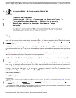 REDLINE ASTM E2890-21 - Standard Test Method for Determination of Kinetic Parameters and Reaction Order for Thermally Unstable Materials by Differential Scanning Calorimetry Using the Kissinger and Farjas Methods