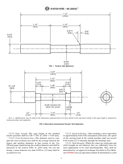 NOTE 1—Modifications may be made in the dimensions indicated above for those details of the specimen outside of the gage length as required by