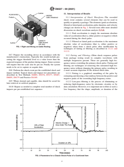 - Interpretation of Results: The standard provides guidance on interpreting waveform data, identifying peak acceleration, pulse duration, and velocity change. It describes techniques for filtering and fairing complex shock waveforms to isolate the primary shock pulse.