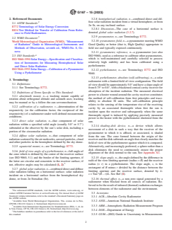 ASTM G167-15(2023), titled Standard Test Method for Calibration of a Pyranometer Using a Pyrheliometer, is a comprehensive international standard developed by ASTM International. This document defines the procedures and requirements for the accurate calibration of pyranometers-radiometric instruments used to measure global (hemispherical) solar irradiance-by comparison with a reference pyrheliometer. The calibration methods prescribed are crucial for aligning pyranometer measurements with the World Radiometric Reference (WRR), ensuring traceability to internationally recognized irradiance scales.