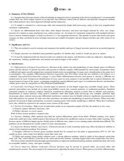 1.2 This test method describes procedures for categorizing and enumerating fungal structures by morphological type. Typically, categories may be as small as genus (for example, Cladosporium) or as large as phylum (for example, basidiospores).