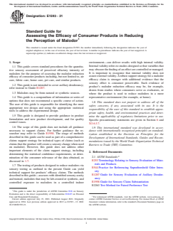 (Guide)Standard Guide for Assessing the Efficacy of Consumer Products in Reducing the Perception of Malodor
