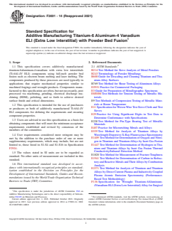 ASTM F3001-14(2021) - Standard Specification for Additive Manufacturing Titanium-6 Aluminum-4 Vanadium ELI (Extra Low Interstitial) with Powder Bed Fusion