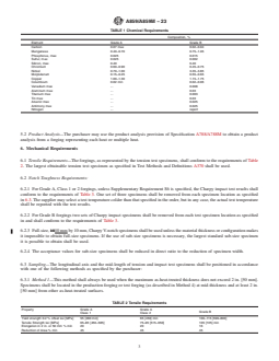 ASTM A859/A859M-23 is a technical specification published by ASTM International. Its full title is "Standard Specification for Age-Hardening Alloy Steel Forgings for Pressure Vessel Components". This standard covers: ABSTRACT This specification covers the standard requirements for low-carbon age-hardened nickel-copper-chromium-molybdenum-columbium alloy steel forgings for pressure vessel components. Materials shall be manufactured to a killed fine austenitic grain size, by vacuum degas melting process. Heat treatment shall be conducted, according to class, by: normalizing and precipitation hardening (Grade A, Class 1); liquid quenching and precipitation hardening (Grade A, Class 2); or double liquid-quenching, tempering, double austenitizing, and precipitation hardening (Grade B). Heat and product analyses shall be used to evaluate the conformance of forgings to required chemical compositions. Tensile, notch toughness, and Charpy impact requirements shall be examined, for which one of four sampling methods may be employed. One tension test and one impact test (for three samples) shall be made for each forging. Dimensions and finishes of the forgings shall conform to that specified by the purchaser. Repair welding shall also be performed only if permitted by the purchaser. SCOPE 1.1 This specification covers requirements for low-carbon age-hardening nickel-copper-chromium-molybdenum-columbium alloy steel forgings for pressure vessel components. 1.2 Forgings under this specification are available as Grades A or B. Grade A may be ordered in one or two classes as follows: 1.2.1 Grade A Class 1—Normalized-and-precipitation-heat-treated, providing a minimum yield strength of 55 ksi [380 MPa] and a minimum tensile strength of 65 ksi [450 MPa]. 1.2.2 Grade A Class 2—Quenched-and-precipitation-heat-treated, providing a minimum yield strength of 65 ksi [450 MPa] and a minimum tensile strength of 75 ksi [515 MPa]. 1.2.3 Grade A was the original steel composition in this specification. 1.3 Although the material is readily weldable, welding procedures are of fundamental importance and must be such as not to affect adversely the properties of the material, especially in the heat-affected zone. It is presupposed that welding procedures will be suitable for the material being welded. 1.4 Supplementary requirements, including those applicable in Specification A788/A788M, are provided for use when additional testing or inspection is desired. These shall apply only when specified individually by the purchaser in the order. 1.5 The values stated in either SI units or inch-pound units are to be regarded separately as standard. The values stated in each system are not necessarily exact equivalents; therefore, to ensure conformance with the standard, each system shall be used independently of the other and values from the two systems shall not be combined. 1.6 This specification is expressed in both inch-pound and SI units. However, unless the order specifies the applicable “M” specification designation [SI units], the material shall be furnished to inch-pound units. 1.7 This international standard was developed in accordance with internationally recognized principles on standardization established in the Decision on Principles for the Development of International Standards, Guides and Recommendations issued by the World Trade Organization Technical Barriers to Trade (TBT) Committee.