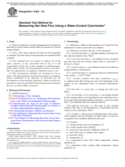 ASTM E422-22 - Standard Test Method for Measuring Net Heat Flux Using a Water-Cooled Calorimeter
