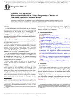 ASTM G150-18 - Standard Test Method for Electrochemical Critical Pitting Temperature Testing of Stainless Steels and Related Alloys