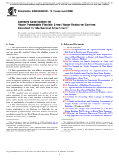 ASTM E2556/E2556M-10(2022) - Standard Specification for Vapor Permeable Flexible Sheet Water-Resistive Barriers Intended for Mechanical Attachment