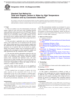 ASTM D4129-05(2020) - Standard Test Method for Total and Organic Carbon in Water by High Temperature Oxidation and by Coulometric Detection