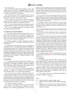 ASTM D4129-05(2020) is a standard published by ASTM International. Its full title is "Standard Test Method for Total and Organic Carbon in Water by High Temperature Oxidation and by Coulometric Detection". This standard covers: SIGNIFICANCE AND USE 5.1 This test method is necessary because of the need for rapid reliable tests for carbonaceous material in waters and sediments. 5.2 It is used for determining the concentration of organic carbon in water that comes from a variety of natural, domestic, and industrial sources. Typically, these measurements are used to monitor organic pollutants in domestic and industrial waste water. 5.3 When a sample is homogenized so that particulate, immiscible phases, and dissolved carbon from both organic and inorganic sources is determined, the measurement is called total carbon (TC). When inorganic carbon response is eliminated by removing the dissolved CO2 prior to the analysis or the dissolved CO2 concentration subtracted from the total carbon concentration, the measurement is called total organic carbon (TOC). When particulates and immiscible phases are removed prior to analysis the measurement is called dissolved carbon (DC), or dissolved organic carbon (DOC) if inorganic carbon response has been eliminated. 5.4 Homogenizing or sparging of a sample, or both, may cause loss of volatile organics, thus yielding a negative error. The extent and significance of such losses must be evaluated on an individual basis. If significant quantities of volatile carbonaceous materials are present or may be present in samples organic carbon should be determined by the difference between the total carbon and the inorganic carbon concentrations. When organic carbon determined both by difference and by sparging agree it is acceptable to determine organic carbon by sparging for similar samples. 5.5 The relationship of TOC to other water quality parameters such as COD and BOD is described in the literature.5 SCOPE 1.1 This test method covers the determination of total and organic carbon in water and waste water, including brackish waters and brines in the range from 2 to 20 000 mg/L. This test method has the advantages of a wide range of concentration which may be determined without sample dilution and the provision for boat or capillary introduction of samples containing sediments and particulate matter where syringe injection is inappropriate. 1.2 This procedure is applicable only to that carbonaceous matter in the sample that can be introduced into the reaction zone. When syringe injection is used to introduce samples into the combustion zone, the syringe needle opening size limits the maximum size of particles that can be present in samples. Sludge and sediment samples must be homogenized prior to sampling with a micropipetor or other appropriate sampler and ladle introduction into the combustion zone is required. 1.3 The precision and bias information reported in this test method was obtained in collaborative testing that included waters of the following types: distilled, deionized, potable, natural, brine, municipal and industrial waste, and water derived from oil shale retorting. Since the precision and bias information reported may not apply to waters of all matrices, it is the user’s responsibility to ensure the validity of this test method on samples of other matrices. 1.4 The values stated in SI units are to be regarded as standard. No other units of measurement are included in this standard. 1.5 This standard does not purport to address all of the safety concerns, if any, associated with its use. It is the responsibility of the user of this standard to establish appropriate safety, health, and environmental practices and determine the applicability of regulatory limitations prior to use. For specific precautionary statements, see 9.1 and 10.2.1. 1.6 This international standard was developed in accordance with internationally recognized principles on standardization established in the Decision on Principles for the Development of International Standards, Guides and Recommendations issued by the World Trade Organization Technical Barriers to Trade (TBT) Committee.