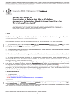 REDLINE ASTM D4856-23 - Standard Test Method for Determination of Sulfuric Acid Mist in Workplace Atmospheres Collected on Mixed Cellulose Ester Filters (Ion Chromatographic Analysis)