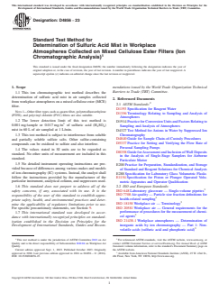 ASTM D4856-23 - Standard Test Method for Determination of Sulfuric Acid Mist in Workplace Atmospheres Collected on Mixed Cellulose Ester Filters (Ion Chromatographic Analysis)
