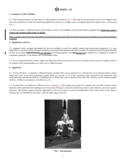 ASTM D4475-21 is a standard published by ASTM International. Its full title is "Standard Test Method for Apparent Horizontal Shear Strength of Pultruded Reinforced Plastic Rods By the Short-Beam Method". This standard covers: SIGNIFICANCE AND USE 5.1 Apparent shear strength determined by this test method is useful for quality control and specification purposes. It is also applicable to research and development programs concerned with interlaminar-shear strength. The apparent shear strength obtained by this test method is not intended for design purposes, but allowed to be utilized for comparative testing of composite materials, if all failures are in horizontal shear. 5.2 It is recommended that control samples be fabricated with each research test series and that care be used to compare each set of controls with corresponding test series run at different times. SCOPE 1.1 This test method covers the determination of the apparent horizontal shear strength of fiber reinforced plastic rods. The specimen is a short beam in the form of lengths of pultruded rods. This test method is applicable to all types of parallel-fiber-reinforced plastic rod samples. 1.2 This test method is primarily used for quality control and specification purposes (see 5.1). 1.3 The values stated in SI units are to be regarded as standard. 1.4 This standard does not purport to address all of the safety concerns, if any, associated with its use. It is the responsibility of the user of this standard to establish appropriate safety, health, and environmental practices and determine the applicability of regulatory limitations prior to use. Note 1: There is no known ISO equivalent to this standard. 1.5 This international standard was developed in accordance with internationally recognized principles on standardization established in the Decision on Principles for the Development of International Standards, Guides and Recommendations issued by the World Trade Organization Technical Barriers to Trade (TBT) Committee.