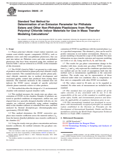 ASTM D8345-21 - Standard Test Method for Determination of an Emission Parameter for Phthalate Esters and Other Non-Phthalate Plasticizers from Planar Polyvinyl Chloride Indoor Materials for Use in Mass Transfer Modeling Calculations